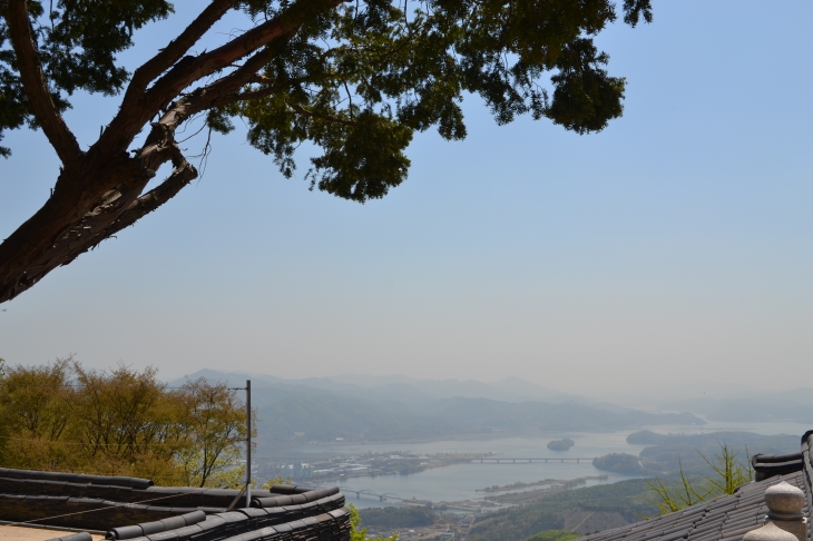 저 멀리, 두 개의 강이 하나로 만나고 있는 신비로운 풍경이 건너다 보인다.