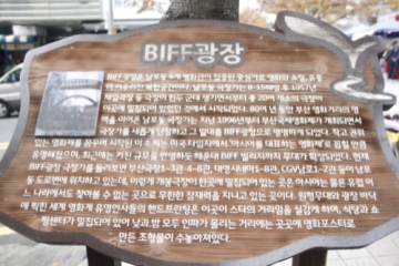 부산국제영화제(BUSAN International Film Festival), BIFF. 부산국제영화제의 이름을 그대로 가져다 쓰고 있는 BIFF 광장은 부산국제영화제의 전야제가 시작되는 곳, 그리고 영화를 사랑하는 이들이 부산국제영화제의 감동을 되새기기 위해 부산 여행길에 빼 놓지 않고 들르는 곳이다. BIFF 광장 일대에는 번화가가 조성되어 있으며, 한류 영화를 사랑하는 외국인들까지도 BIFF 광장을 찾으니 이곳은 언제나 북적이는 부산 중구 대표 명소 중 한 곳이 되었다.