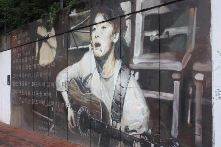 대구광역시 중구 대봉동 일대에는 ‘김광석 다시 그리기 길’이라는 이색 골목이 있다. 음유시인 김광석과 그의 노래를 모티브로 조성된 이 길의 주된 테마는 바로 낭만과 추억. 살아 숨 쉴 것만 같은 김광석의 벽화들은 그의 노래가 흐르던 80년대를 떠올리게 만든다. 350여 미터의 길을 걷는 동안 저마다의 추억이 머릿속에 가득해지니, 이야기가 있는 골목으로 김광석 다시 그리기 길을 추천하지 않을 수 없다.