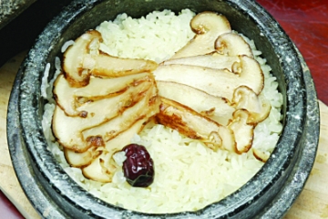 양양군의 송이 돌솥밥에는 양양 특산물, 일급 송이가 들어간다.경상북도 봉화군과 강원도 양양군에서는 송이 향 그윽한 송이 돌솥밥을 맛볼 수 있다. 코끝에 맴도는 송이 향이 입맛을 더욱 돋워 주는 이 송이 돌솥밥에는 단짝처럼 따라붙는 송이 차가 있으니, 이 또한 향긋한 즐거움이 될 것이다. 충청북도 단양군의 마늘 돌솥밥 또한 송이 돌솥밥에 뒤지지 않는 향기를 자랑한다. 마늘 돌솥밥에는 곤드레나물이 더해진 것이 특징. 구운 마늘, 마늘장아찌 등 단양의 특산물 마늘이 잔뜩 들어간 밑반찬도 푸짐하니, 마늘을 좋아한다면 마늘 돌솥밥을 맛보지 않을 수 없을 것이다. 강원도 강릉시와 원주시 등에서는 홍합 돌솥밥을 맛볼 수 있다. 날치 알이 더해진 홍합 돌솥밥은 그 맛은 물론 영양까지 뛰어나다. 홍합탕의 시원한 국물과 함께 한다면 더욱이 금상첨화.