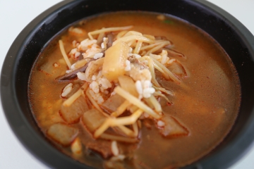 쇠고기와 선지를 가득 넣어 끓여낸 쇠고기 국밥에서도 그리운 맛이 난다.4