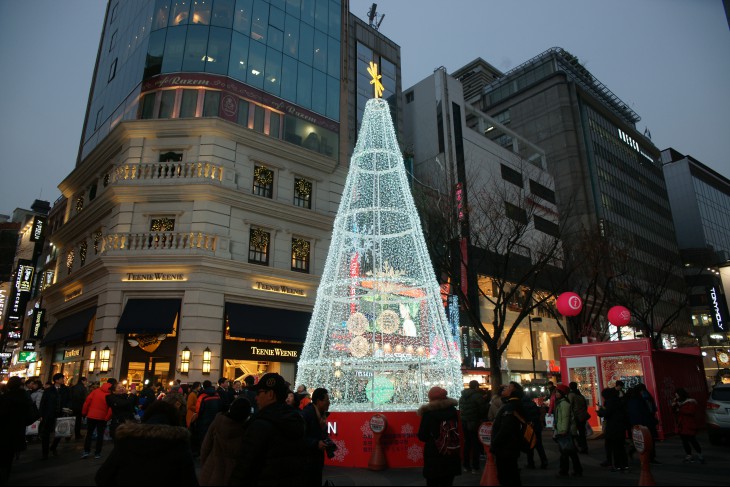 크리스마스가 되면 명동 거리에는 전구 트리가 불을 밝힌다.