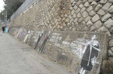 삼청동의 상징인 돌담길에 다양한 벽화가 그려져 있다.2
