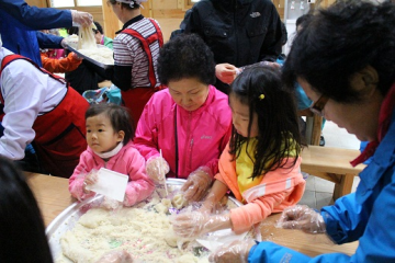 한편 송천리 마을에서는 떡의 판매에만 그치지 않고 즉석에서 직접 떡을 만들어 먹을 수 있는 체험장을 운영하고 있다. 방문시간을 사전에 알려주면 그 때 맞추어 프로그램을 진행한다. 떡메를 치고 콩고물을 입혀 인절미와 찹쌀떡을 만들어 보는 형태로 진행된다. 이 때문에 가족 단위의 여행지로는 물론 아이들의 체험학습 장소로도 인기가 높다. 친환경 찹쌀과 쑥, 취나물 등을 섞어 만들어내는 떡은 향과 식감 모두 일품이다. 떡 체험과 함께 즐기는 갖가지 민속놀이는 마을을 찾는 시간을 더욱 특별하게 만든다.