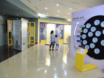 1층에서 가장 넓은 공간을 차지하고 있는 전시장은 8개의 코스로 이루어진 체험공간이다. 처음 입구에 들어서면 동전을 만들 수 있는 압인기가 전시되어 있다. 2층 체험실에서 이러한 원리를 이용한 ‘나만의 동전 만들기’ 체험이 있는데 재료를 구매하면 즐길 수 있다. 압인기와 위조지폐 식별법을 배우고 나면 본격적으로 경제흐름이 도식화 된 전시물들이 나온다. 통화 신용정책의 파급경로부터 화폐가치계산, 내가 왜 돈이 안 모이는지를 간접적으로 실감할 수 있는 체감 물가 구하기, 애니메이션으로 배우는 경제학습과 게임, 그리고 직접 주인공이 되어 나라 경제가 어떻게 순환하는지를 배우는 나라경제 순환체험까지 하고 나면 8코스 경제배우기 체험이 끝난다. 그리고 2층으로 올라가면 구매한 재료들로 체험할 수 있는 화폐 만들기와 각 화폐 별 정보를 볼 수 있는 전시장이 있다.