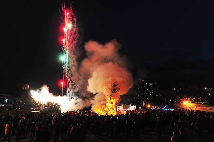 도심 속에서 타오르는 달집의 모습은 색다른 즐거움을 준다.