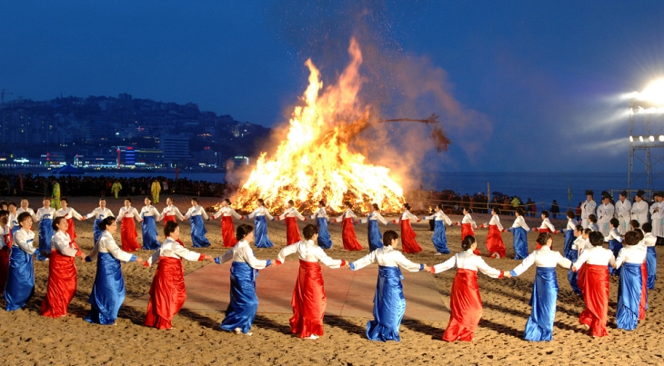 해가 지기 전부터 서서히 달구어진 열기는 달집을 태우며 절정을 맞는다. 평소에 쉽게 볼 수 없는 거대한 불길에 넋을 잃기 십상이지만, 이때 타오르는 달집 또한 잘 보아 두어야 할 것. 달집이 잘 타오르면 마을이 길하다고 하며, 달집이 쓰러지는 방향에 있는 마을은 일 년 내내 평안하다고 한다. 휘영청 달이 밝은 이 날, 흔히 추석에 벌이는 놀이인 ‘강강술래’를 프로그램에 포함하고 있는 축제도 많다. 달이 밝은 날에 아녀자들이 부르던 노래라 하니 대보름에 접한다 한들 큰 위화감은 없다.