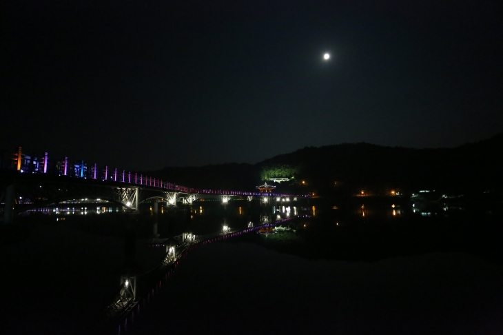 월영교 위로 떠오른 달이 안동의 밤하늘을 비추고 있다.