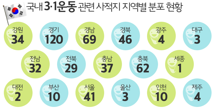 전국 곳곳에 삼일절과 관련된 사적지, 기념관, 생가 등이 분포되어 있는데요. 삼일절만큼이라도 나라의 독립을 위해 희생한 많은 순국선열들에 감사하는 마음을 가져보아요!