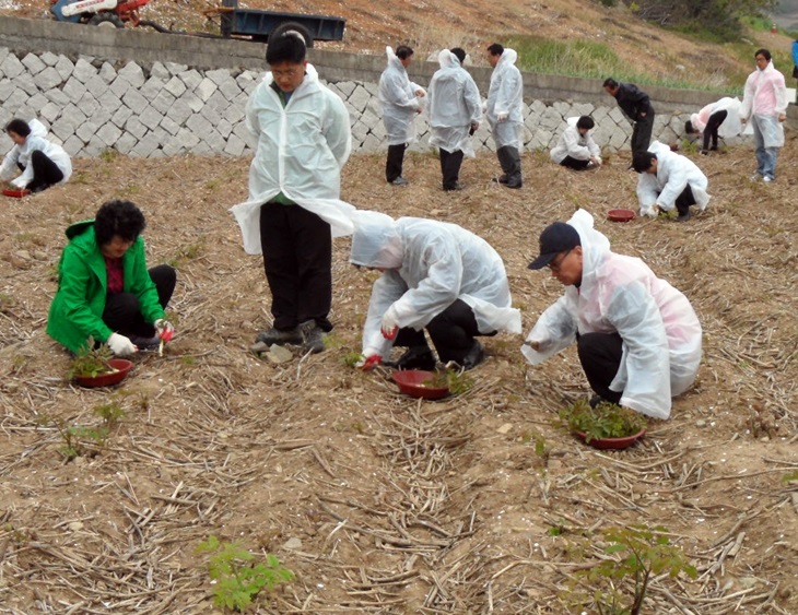 전라남도 여수에서 땅두릅을 캐는 모습. 충청도 이남에는 땅두릅이, 강원도에는 두릅나무가 많다.