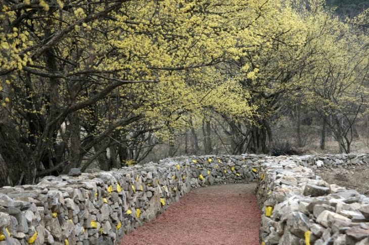 산수유 가득한 돌담길을 걷다 보면 마음속까지 봄이 스며 온다.