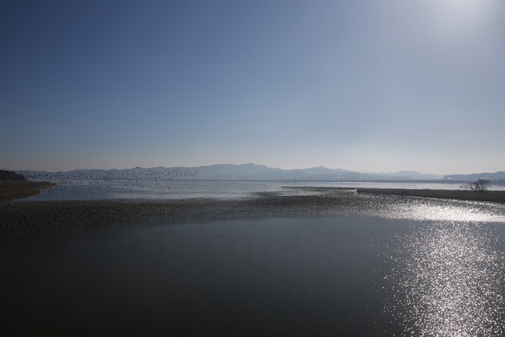 호남평야의 젖줄, 금강 하구에는 해마다 철새들이 찾아와 진풍경을 이룬다. 사진은 전북 군산 일대 금강의 가창오리 떼.
