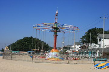 회전그네는 무창포 해수욕장의 유일한 놀이기구로, 바닷길을 찾은 아이들에 즐거움을 선사한다.2