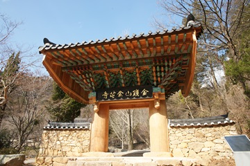순천 금둔사 일주문, 2013년 보수공사 중 무너져 새로 지은 것이다.