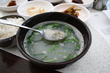 경남 하동군은 삶은 국물에 재첩 살을 넣어 끓인 '재첩국'이 유명하다.