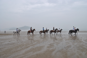 국제 해변 승마장 또한 신안튤립공원 근처에 있다는 사실을 기억해 두자.섬의 매력, 그 첫 번째는 송림원이며 두 번째는 임자대광해수욕장이다. 대나무와 해송으로 이루어진 방풍림의 모습이 섬에 와 있음을 실감하였다면, 튤립공원을 벗어나 바다 쪽으로 걸어가 보자. 눈 앞에 펼쳐지게 되는 광활한 해수욕장이 바로 임자대광해수욕장이다. 이 해수욕장 또한 조금 전까지 보았던 튤립 세상처럼 끝없이 드넓게 펼쳐져 있다. 무엇보다 이곳은 우리나라 최대 규모를 가지고 있다. 그 길이만 해도 12km에 달하니 '해변 자전거 타기’를 이용해 볼 것을 권한다.