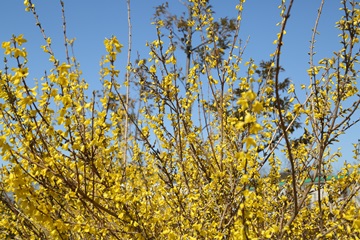 봄을 알리는 앙증맞은 개나리, 진한 노란빛이 아름답다.
