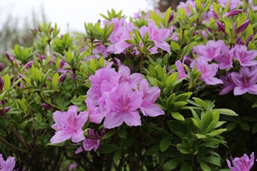 철쭉은 파릇한 잎과 더불어 꽃을 피우며 꽃받침을 만졌을 때 끈적임이 있다.