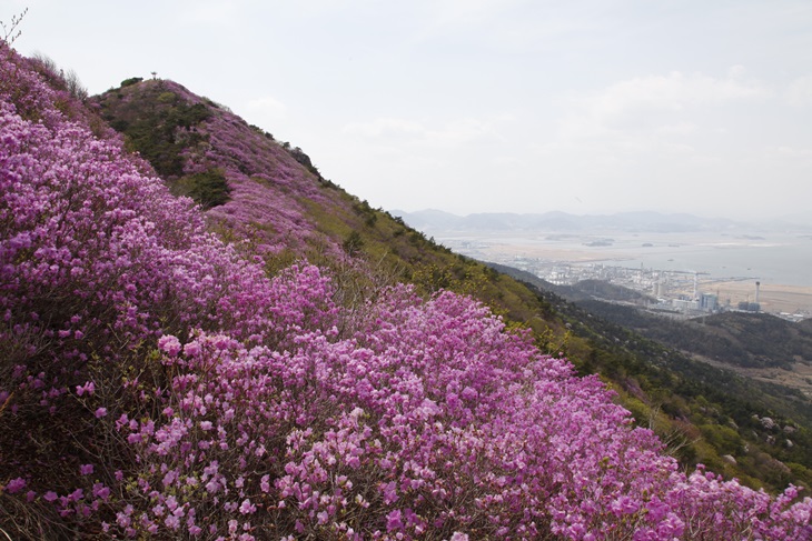 여수 영취산 자락에 펼쳐진 진달래군락. 진달래는 봄 산행을 부추긴다.