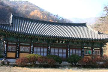 광덕사 대웅전(좌)과 적선당(우) 전경. 광덕사의 건물 대부분은 임진왜란 때 소실됐다.광덕산 계곡을 낀 등산로를 따라 올라가다 보면 이윽고 천년고찰 광덕사를 만나게 된다. 신라 선덕여왕 때인 637년 자장율사가 창건했다고 전해지는 광덕사는 광덕산의 동남쪽 기슭에 자리 잡고 있다. 임진왜란 이전에는 충청권을 대표할 만큼 제법 규모가 있는 사찰이었다고 알려져 있지만, 임진왜란 때 대부분의 건물이 소실됐다. 지금 남아 있는 건물 중 상당수는 복원하여 다시 세운 것이다. 광덕사로 향하는 일주문 앞쪽에는 ‘태화산 광덕사’라는 문구가, 뒤쪽으로는 ‘호서제일선원’이라는 문구가 새겨진 편액이 걸려 있다. 경내로 들어서면 고즈넉한 분위기가 물씬 풍겨온다. 전해지는 이야기에 따르면 조선시대 때 세조가 지병을 치유하기 위해 다녀갔을 만큼, 널리 알려진 절이었다고 한다.