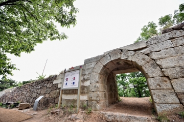 문수산성의 홍예문, 그리고 녹음과 어우러진 평화누리길.