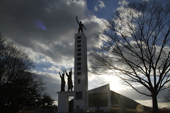 하늘을 향해 팔을 뻗은 윤 의사 동상의 모습이 인상적이다.