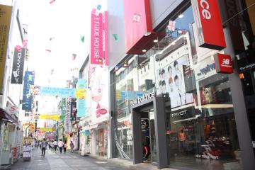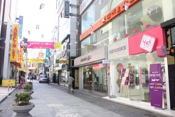 충장로에는 의류, 신발 등 다양한 상점들이 밀집해 있다.